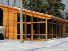 Както можете да видите, предимствата на едноетажни къщи с скатен покрив са забележимо по-големи от недостатъците. И минусите не са толкова големи, че да изоставим красив модерен проект..