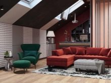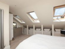 Сложността на вътрешното подреждане директно зависи от височината на наклонената стена: колкото по -ниска е тя, толкова по -изобретателен ще трябва да работи дизайнерът.