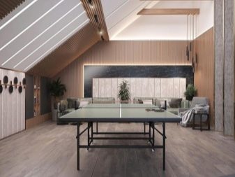 - Ако в къщата има достатъчно стаи, горното ниво може да се използва като билярдна зала..