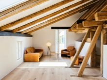 Но планирането на интериора в такива помещения не е лесно, особено на таванския етаж, тъй като наклонът на покрива намалява височината на жилищното пространство..