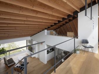 - Ако изоставите тавана, ще бъде възможно да се увеличи обемът на вътрешното пространство на вилата поради повдигнатите тавани.