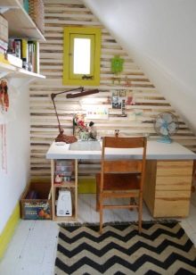 Сложността на вътрешното подреждане директно зависи от височината на наклонената стена: колкото по -ниска е тя, толкова по -изобретателен ще трябва да работи дизайнерът.