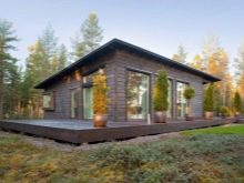 Както можете да видите, предимствата на едноетажни къщи с скатен покрив са забележимо по-големи от недостатъците. И минусите не са толкова големи, че да изоставим красив модерен проект..