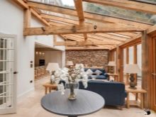 Ако сградата не е допълнена с таванско помещение, вместо таван може да се види рафтова система. Красиво лакираните, боядисани или оцветени греди придават специален чар на стаята. Стаята изглежда ефектно вътре в присъствието на втора светлина или просто големи прозорци.
