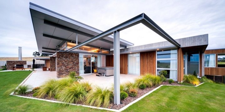 - Покривите с навеси се използват за създаване на ефектни съвременни сгради с технологично оборудване и стилен външен вид..