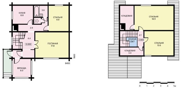 Първоначално се приемаше, че втората светлина е допустима само в големи къщи.. Независимо от това къщите с площ 72-100 м2 могат да осигурят двустепенно осветление.. В този случай малка площ отворено пространство ще бъде компенсирана от терасата в съседство с къщата. Обикновено такива къщи се правят леки и ефирни. На един етаж се помещават няколко спални и помощен блок. Холът се превръща в основното помещение, в него таваните се разглобяват.