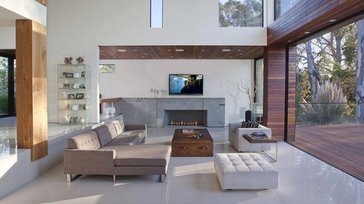 Стилистичният дизайн на едноетажна къща с двойно осветление я прави ефектна и привлекателна. Залата в такива стаи може да бъде декорирана в различни стилове.. Някои от най -търсените опции за дизайн включват: