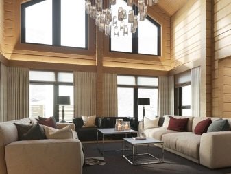 Светлината на две нива в таванските конструкции създава уникална атмосфера; просто е невъзможно да се образува нещо подобно с помощта на електрическо осветление. въпреки това във вечерните часове, както и в облачни дни, електричеството все още трябва да бъде включено. Ето защо трябва предварително да обмислите местоположението на полилеите, както и подовите лампи и бра..