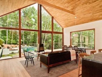 Някои архитектурни решения включват инсталиране на панорамни прозорци, които от първия ред се разбират като самия покрив.