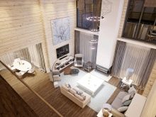 Особен интерес представляват двуетажни дървени конструкции с втора светлина, чиито предимства включват необичаен дизайн и удобно оформление.. Втората светлина във вилата се осигурява от липсата на тавани на един от етажите в хола, поради което пространството става просторно и светло. По правило този тип къщи имат голяма площ и следователно ви позволяват да подредите необходимия брой спални, бани и помощни помещения на два етажа..