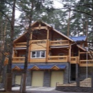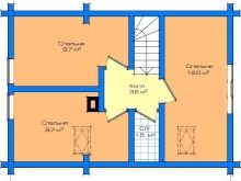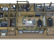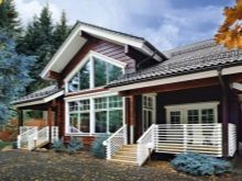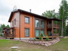 По цялата конструкция е монтирана просторна тераса. Такава къща, като правило, има скатен покрив, който, за съжаление, води до натрупване на голямо количество сняг през зимата..