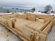 Основният материал, използван за този тип конструкция, е дърво – залепен или класически рендосан дървен материал. Между другото, при проектирането е важно да запомните, че първият тип е много по -тежък от втория, поради което изисква подходяща изолирана основа. В момента готовите стоманобетонни плочи са популярни за създаване на основи..