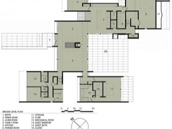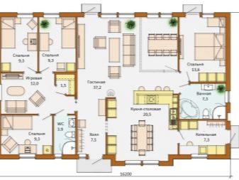 Когато проектирате частни жилища на един етаж с площ 250-300 квадратни метра, можете да включите просторна всекидневна с площ 40-50 квадратни метра. м, две спални, детска стая с кът за игра, кухня с трапезария, малка техническа стая, две бани с площ 7-8 кв. м, зала, гараж за 1 или 2 коли.