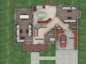 Можете също така да осигурите веранда или тераса и гараж за 1 или 2 коли. Преградите в такива големи жилища могат да бъдат направени прозрачни с алуминиеви профили. Те могат да бъдат създадени от естествен или изкуствен камък, дърво, метал.