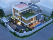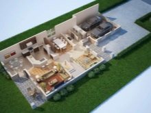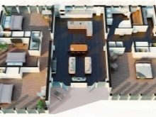 За по-големи площи можете да осигурите просторна всекидневна (25-30 кв. М), три спални, 1 или 2 бани, кухня, комбинирана с трапезария, просторна антре. Можете също така да включите гараж за две коли в проекта..