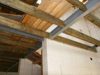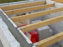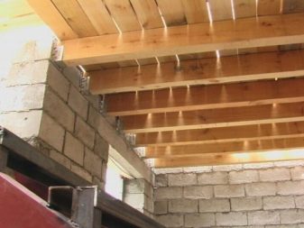 Ръбовете на гредите се вкарват сляпо във външните стени, размерът на вдлъбнатината е 150-180 мм. Разстоянието от вътрешните стени до гредите трябва да бъде 20-30 мм.
