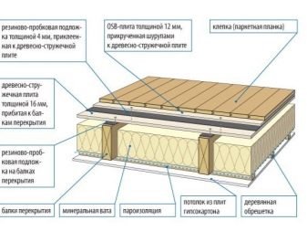 Рамковата къща също има свои собствени нюанси за създаване на тавански етаж. Ако над него е оборудван жилищен таван, няма нужда от хидроизолация, но е необходимо да се подготви висококачествена пароизолация. Под тавани, които не се отопляват, се използват много повече изолационни покрития, те са позиционирани по специален начин и максимизират термичната защита. Под отопляеми жилищни помещения трупите и предният под са разделени с гумена или коркова подложка за максимална звукоизолация.
