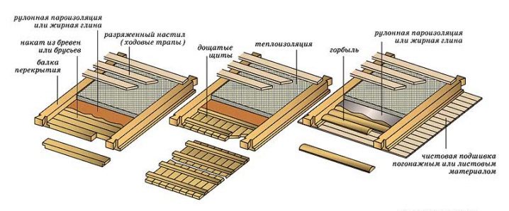 Понякога сводът е създаден от I-греда, допълнена от дървени рафтове и ориентирана стена от плочи. В таванските тавани пространството между гредите е изпълнено с изолация и пароизолация от страната на тавана на помещението. Изолацията по периметъра обикновено се извършва с експандиран полистирол.