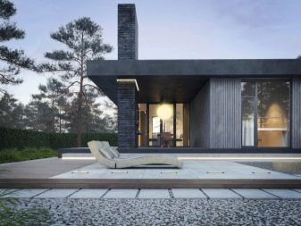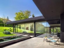 Едноетажна високотехнологична къща има почти пълно остъкляване на фасадата-от пода до тавана. Изкуственото осветление през деня изобщо не е полезно тук – дори при облачно време..