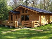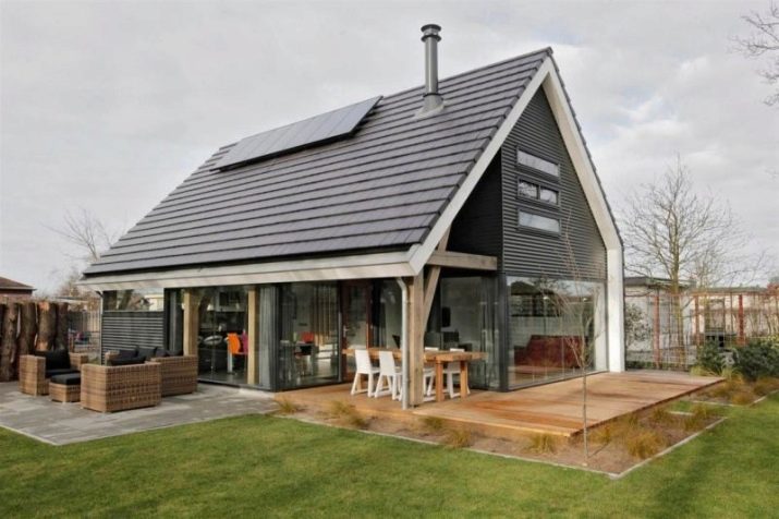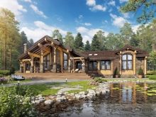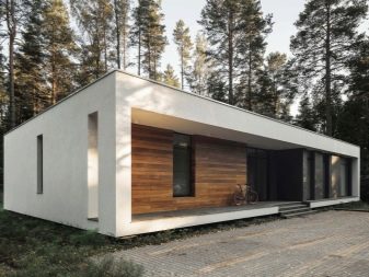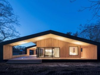 Дървени едноетажни къщи, изградени от трупи или греди, смътно приличат на модернизирана хижа. Разликата е, че наклоните на покрива в такива къщи не са направени стръмни, под ъгъл до 45 градуса, а площта на такава къща е много по -голяма, нейният план на мястото не е квадратен. Проектът предвижда камина на дърва, тази структура не трябва да е кубична.