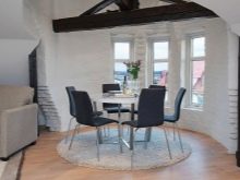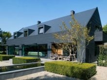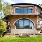 - Двуетажна къща с таванско помещение като трети етаж смътно прилича на замък, кули, в които са разположени прозорци с ланцет, чиито малки наклони са вградени в основния наклон на общия покрив. Позоваване на класиката с елементи на модерността – облицовка от фаянс на сградата с плочки, тухли и колони на входа.