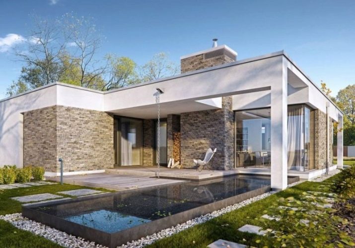 - По -модерна версия, изградена в стила на най -новите постижения на технологичната наука, е двуетажна сграда с плосък покрив. На територията има цветна градина и басейн, има място за фонтани. Вторият етаж има пространство със или без прозрачен покрив, което не принадлежи към категорията тераси или веранди, това е просто платформа с проникваща вътре светлина. Вместо стъкло може да се използва плътен прозрачен акрил или поликарбонат или на негово място изобщо да няма сенник.