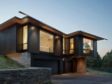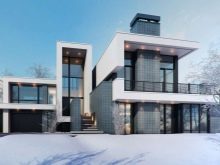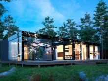 - Алтернатива на предишната сграда е двуетажна къща с покрити пространства, които са неглазирани тераси. Както в този, така и в предишния случай се използва панорамно остъкляване – за по -добър изглед и без използване на изкуствено осветление при всяко време през деня.