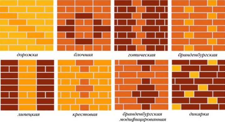 Използвайки тухли с различни цветове, можете да придадете на къщата уникален вид с различни граници и връзки..