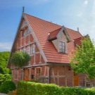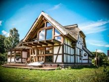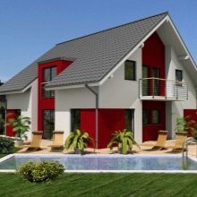 Германската технология е специална с това, че включва елементи като таванско помещение, малка веранда, еркери, балкони, тераси, панорамни прозорци и много други.. Това също трябва да се има предвид при проектирането. Покривът е с керемиди, финалът е адаптиран за къщи с фахверк. За основната част на къщата могат да бъдат предвидени други конструкции – гараж, пристройка, градина.