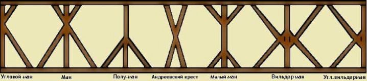 Фахверк е съставен от мана, получовек, Уайлдърман, кръст Свети Андрей. Омрежените ленти могат да бъдат в различни комбинации.
