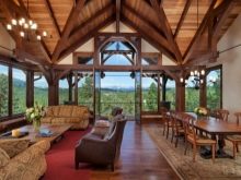 Интериорът на къщата се получава без носещи стени и други конструкции, които разделят пространството на по-малки части. Първият етаж е предимно просторен; стените са сглобени от топлоизолационни материали. Основните крепежни елементи за дърво са щифтове и дюбели. Поради липсата на потъване на къщата, завършването започва веднага след монтажа.