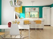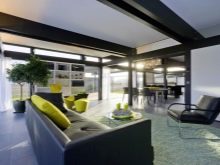 Доста атрактивен вариант е панорамното остъкляване във връзка със светлите тонове на стаята.. Цветовата схема на стените може да бъде разнородна. Отворите на прозорците трябва да бъдат подчертани в други нюанси – жълто, синьо, сиво. По -добре е да подредите фитингите компактно и ефективно..