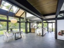 Остъкляване на двойно ниво, така че стаите да имат възможно най-много естествена светлина. Ако верандата е предвидена от проекта, тя се прави ниска на 2-3 стъпки.