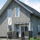 Външната декорация често се извършва под формата на панели. Значителен брой хора използват опции с изображение на тухла, светли и тъмни. Ако къщата се намира в зелена зона, тогава дървесният цвят може да стане съвсем органичен.. Стълбове, опори и други високи вертикални конструкции могат да бъдат пребоядисани в тъмни нюанси, които подчертават и допълват образа на модерна панелна къща. Важна част е комбинацията от сянката на покрива и стените. Цветовата им гама може да бъде обща или разделена в съответствие с тъмните и светлите нюанси..