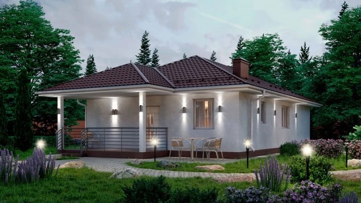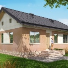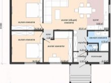 Всички проекти на прости едноетажни къщи могат да се правят с обикновен двускатен покрив. В повечето проекти на такъв квадрат вътрешният план на къщата също ще изисква внимателно внимание. Модерен проект включва спалня, кухня и хол, детска стая и баня. Помощните помещения, например килер, може да не се поберат на такъв квадрат. Но ще е необходимо техническо помещение за котелно помещение с обем най -малко 15 м3 – котелът не може да бъде поставен, например, в кухня -хол.