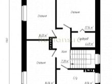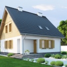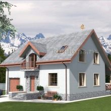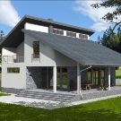 Двуетажна къща е опция, избрана в случай, че в нея се установява голямо семейство. Оформлението разделя цялата структура на „дневни“ и „нощни“ места. На приземния етаж има универсален “общ”, който включва хол, трапезария и кухня. Този метод се допълва от офис, в който по-възрастните членове на семейството могат да живеят и работят, или тази стая се преоборудва за спалня за гости. Котелното помещение може да се комбинира с работилница. Входно антре, комбинирана баня, антре и стълбище към втория етаж са разположени в съседни помежду си помещения. На втория етаж има други спални, втора баня, която включва душ. Детска (стая за игри) също може да бъде преместена на този етаж.