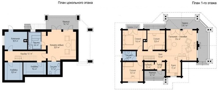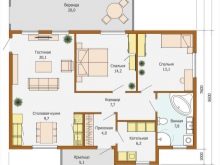 В едноетажна къща, баня, вестибюл, котелно помещение, кухня, всекидневна и спалня за всеки от членовете на семейството е естествено и много често явление.. В случай на двуетажна къща, например, ако в нея живеят не едно, а две семейства, всички стаи, с изключение на хола, котелното и вестибюла, могат да се повторят: отделна баня, отделна кухня. В едноетажни, двуетажни и тавански къщи входното антре е оборудвано с гардероб. В двуетажна къща входното антре се разширява до малък коридор, който плавно се влива в хола на приземния етаж. Някои проекти на едноетажни къщи предвиждат наличието на камина на дърва в хола, направена под формата на пълноценна печка.