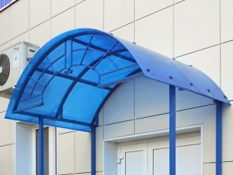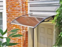 - Поликарбонат. Поликарбонатни сенници често се монтират върху метални рамки. Този материал се предлага в различни цветове и дебелини. Поликарбонатните листове са гъвкави, евтини и лесни за инсталиране. С помощта на такива екземпляри е възможно да се изгради козирка с нестандартна форма.
