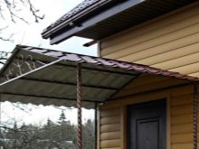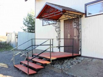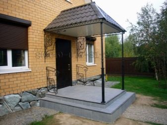 Правилно изработената метална козирка, монтирана над верандата, може да се превърне в шикозно допълнение към предната част на жилището.. Помислете за някои красиви примери за избор на такъв дизайн..