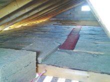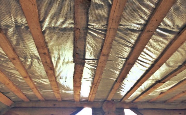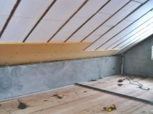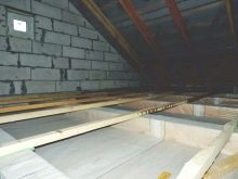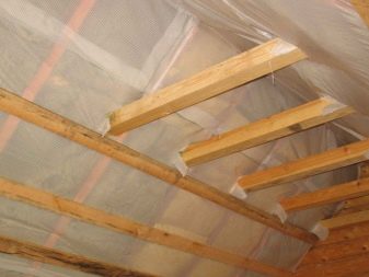 Следва ред на таванната пароизолация – тя се осигурява от пластмасови филми, пергамин или покривен материал. При закрепване на такива материали към гредите се нанася лепило или се напълват летви на стъпки от 0,4-0,5 m.
