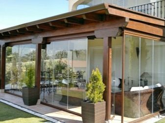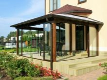 Има много други възможности за остъкляване на верандата.. Често дизайнът на тази зона е направен от плексиглас или тонирано стъкло..