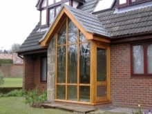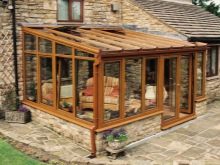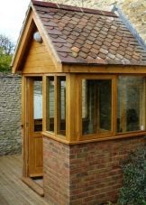 За изветрени къщи в класически или селски стил, по -добре е да използвате остъкляване с дървени рамки. Такива конструкции изглеждат добре, когато се комбинират не само с дървени къщи, но и с блокови или каменни къщи..