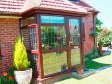 - PVC остъкляването може да се счита за универсално. Такива решения се вписват идеално в голямо разнообразие от дизайни на къщи. По желание можете да поръчате такова остъкляване, при което пластмасовите части няма да имат бял цвят, а всеки друг нюанс, до имитация на материали като дърво или камък.