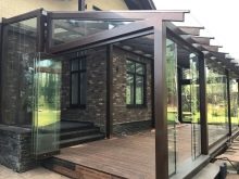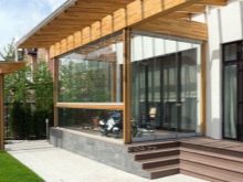 Има много други възможности за остъкляване на верандата.. Често дизайнът на тази зона е направен от плексиглас или тонирано стъкло..