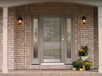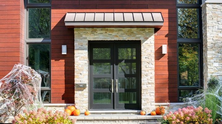 Също така сред входните групи могат да се разграничат декоративни, защитни и декоративно-защитни. Последните два типа се инсталират най -често в случаите, когато сградата може да бъде хакната или проникната от нарушители.. В противен случай е по -добре да изберете декоративна конструкция, която ще има привлекателен, стилен и оригинален външен вид, всъщност служеща като декорация за фасадата..