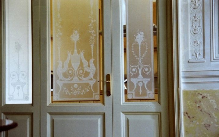 - Стъклените входни групи в стил Арт Нуво изглеждат много сдържани и строги. Те са идеални за декорация на офис.