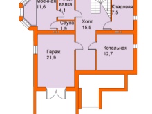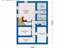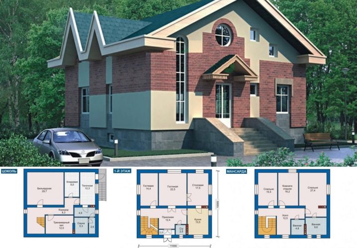 Тази опция е подходяща за малко семейство. В сутерена можете да подредите гараж, работилница, пещ. В бъдеще, ако е необходимо, таванското помещение може да се превърне в тавански етаж. За да се предвиди възможността за такава промяна, таванът на сградата незабавно се подсилва допълнително..