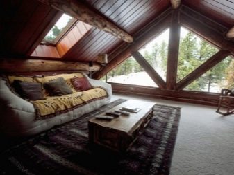 - Важно е да помислите за подреждането на прозорците. Ако стаята е малка, отворите за прозорци се правят не в страничните стени, а по склона на покрива.