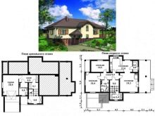 Тази опция е оптимална. Той съчетава всички предимства на едноетажна сграда с голяма използваема площ. Такава къща може удобно да побере голямо семейство. В същото време експлоатационните разходи ще бъдат с порядък по-ниски, отколкото в двуетажно имение..