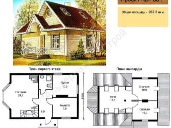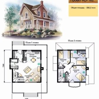 Проектите на къщи с таванско помещение до 100 м2 се отличават със своята компактност и удобство. Площта на такава къща не е твърде малка, но и не е голяма. По този начин е възможно да се организира удобно оформление на къща, предназначена за малко семейство (за 4-5 души). Той ще съдържа всички необходими помещения за комфортен живот, но няма да има излишък.